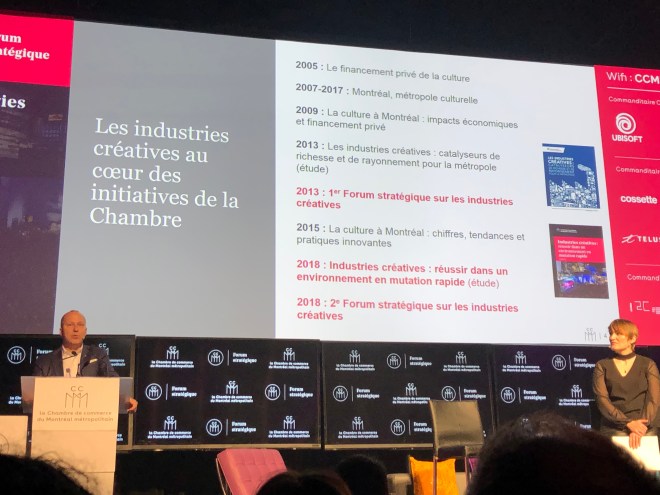 Moment Factory, Cirque du Soleil, C2Montréal ; ce sont des icônes de la créativité de Montréal. « Les industries créatives, c’est vous » acclame Valérie Plante, mairesse de Montréal. C’est chaque entreprise, artiste et technocréateur qui contribue à l’essor créatif de la ville. C’est plus large qu’un écosystème, c’est une grappe, peut-être d’un millésime 2019 dirait Éric Fournier, associé et producteur exécutif de Moment Factory. Une chose certaine, il demeure « important qu’on se réunisse entre nous pour faire l’état des lieux. » résume Michel Leblanc à propos de l’objectif commun qui nous rassemble à ce forum.