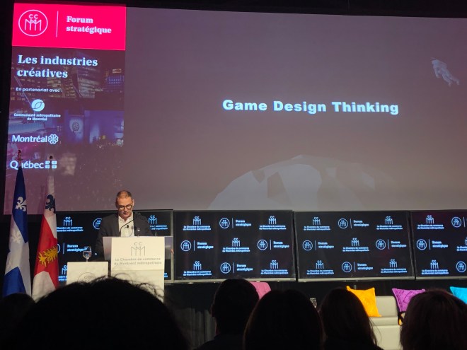 Au forum stratégique sur les industries créatives de la Chambre de commerce du Montréal métropolitain, Dominique Lebel, vice-président sénior solutions d’affaires, a introduit le Game Design Thinking : « Nous avons créé une équipe dédiée à ce que nous appelons le Game Design Thinking, une approche unique qui nous permet de transposer nos apprentissages dans d’autres secteurs. Nous avons aujourd’hui des projets dans la Banque et l’Assurance, dans l’aéronautique, dans la santé. D’autres secteurs bénéficient déjà de l’expertise des développeurs de jeu. » Autrement dit, c’est l’art de découvrir de nouvelles opportunités d’affaires dans des secteurs d’activités autres que celui dont nous dédions nos compétences clés.